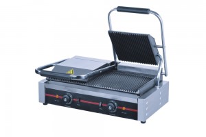 Grill your most popular sandwiches to perfection with this multi use contact panini sandwich grill! This grill features smooth cast iron plates to evenly cook sandwiches and leave tantalizing grill marks on the bread. The thermostatic controls let you adjust temperatures so you can cook at the perfe..